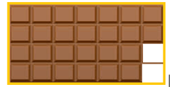 1․Պարզիր, թե շոկոլադի սալիկի ո՞ր մասն է մնացել, եթե սկզբում կար 28 բաժին:
