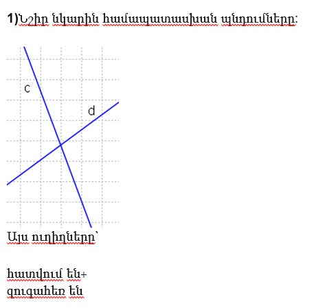 2)Եթե հարթության վրա երկու ուղիղներ զուգահեռ են, ապա այդ ուղիղները չեն հատվում: