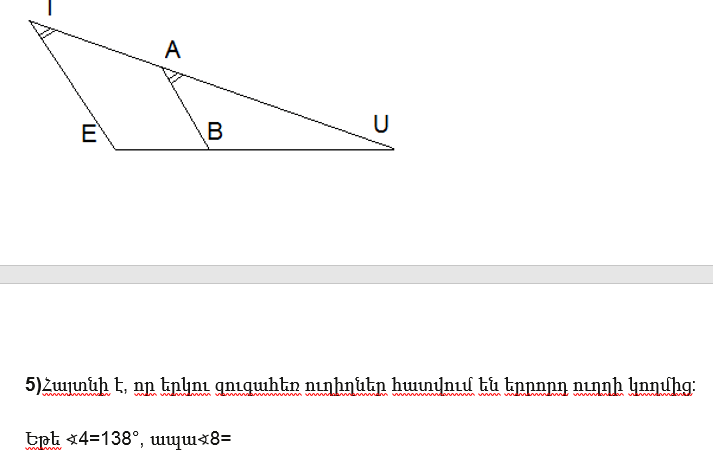 9)Երկու զուգահեռ ուղիղները հատվում են երրորդ ուղղի կողմից: