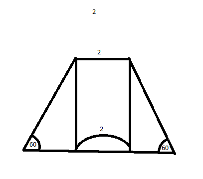 2)Հավասարասրուն սեղանի մեծ հիմքը 4մ է, սրունքը՝ 2մ, իսկ դրանց կազմած անկյունը՝ 60o ։ Գտեք սեղանի փոքր հիմքը։