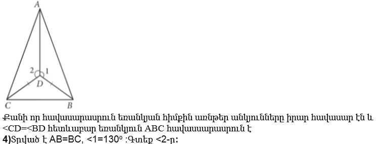 4)Նկարում <1=<2, <3=<4 : Ապացուցեք, որ <B=<D: